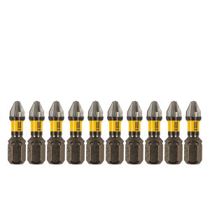 Набор бит торсионных PH2 x 25 мм Denzel 11685 с лазерной обработкой шлица, из стали S2, 10 шт., предназначен для монтажа и демонтажа резьбовых соединений с помощью ударного шуруповерта. Он незаменим в строительных, слесарных и монтажных работах, в автосервисах, при проведении ремонта в доме.,Торсионная зона способна пружинить, за счет чего она частично амортизирует тангенциальный удар от шуруповерта. Такое решение позволяет равномерно распределить нагрузку по бите, избежать поломки шлица и в разы увеличить объем работы, проделанный одной насадкой.