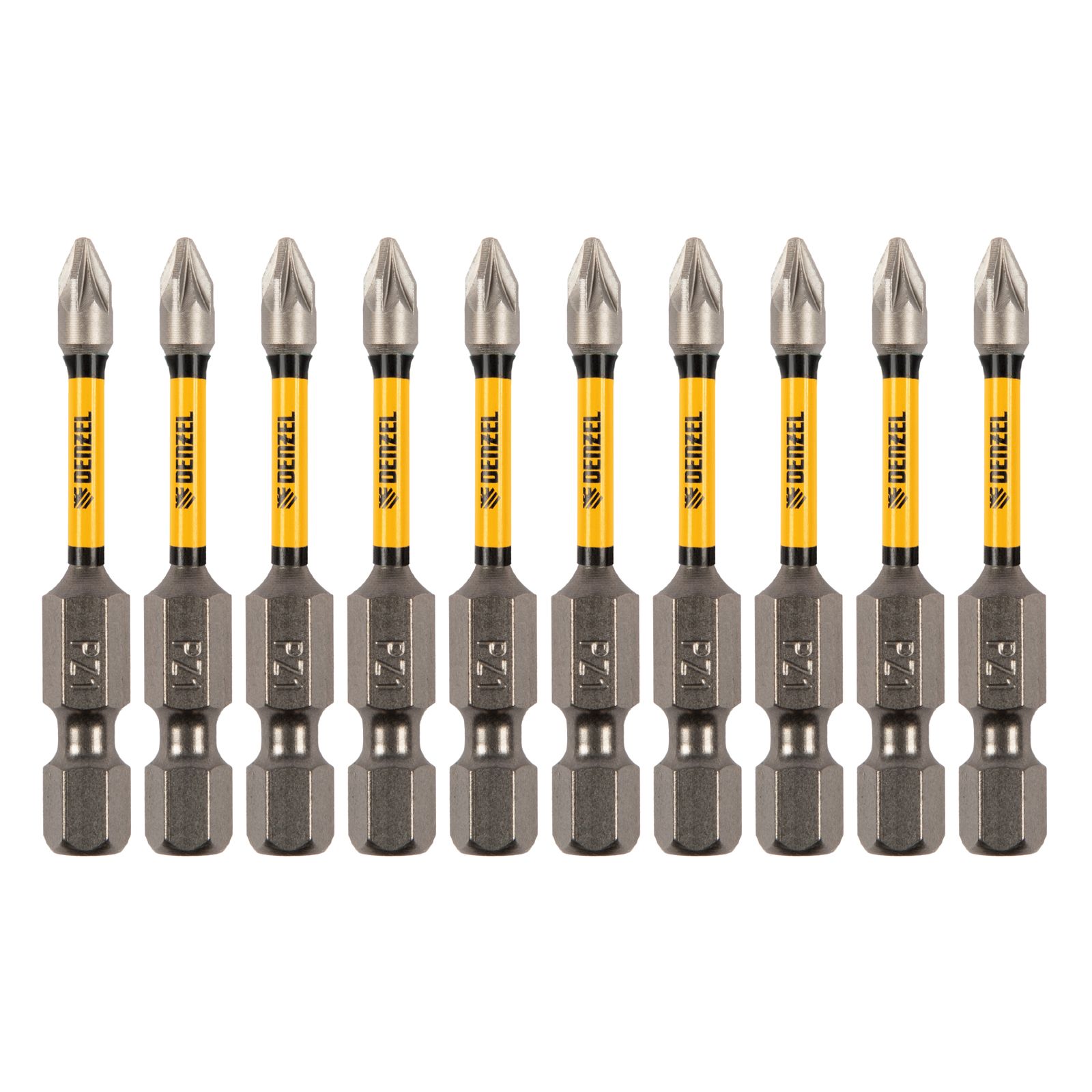 Бита IMPACT, PZ1x50 мм, лазерная обработка шлица, сталь S2, 10 шт., Е 6,3 Denzel