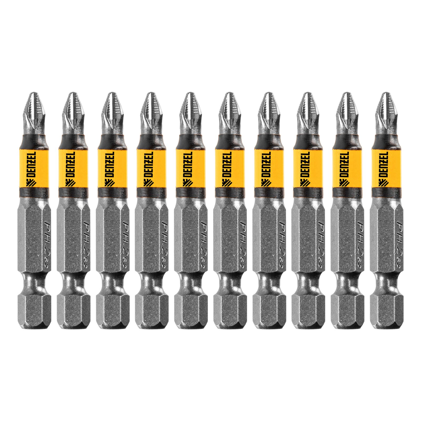 Бита PH2х50, сталь легированная S2, 10 шт., круглый профиль, отрывная упаковка, Е 6,3 Denzel