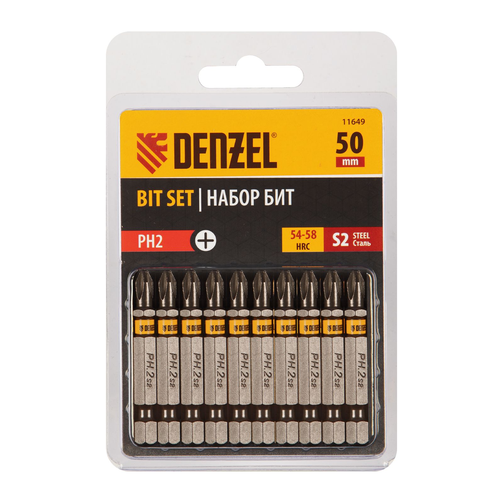 Бита PH2х50, сталь S2, шестигранный профиль, 10 шт. Е 6,3 Denzel