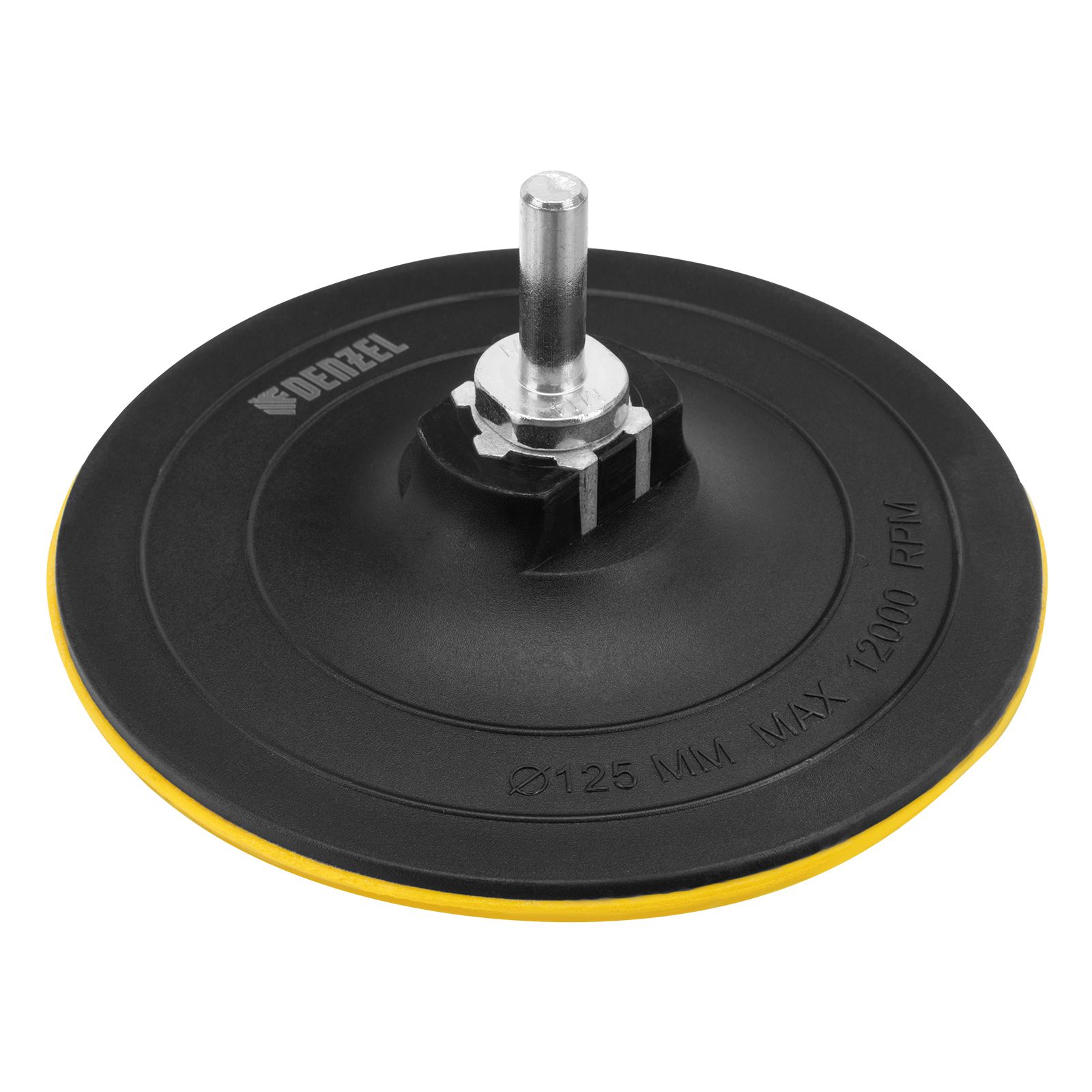 Тарелка опорная для дрели и УШМ с липучкой, 125 мм, твердая, с адаптером c М14 на d8// Denzel