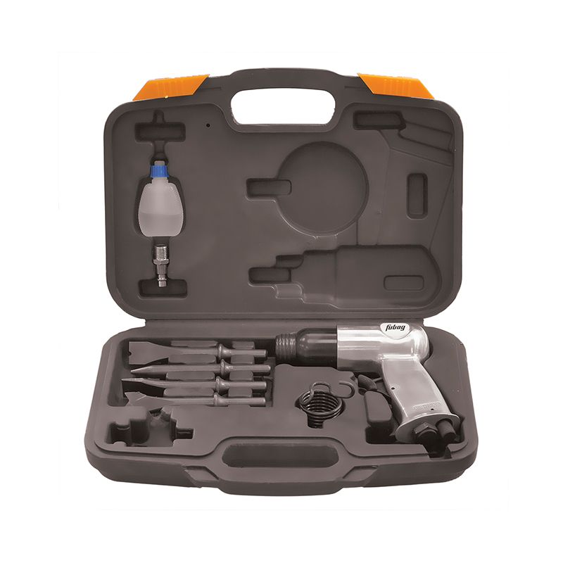 • Пневмодолото FUBAG HRS4500 поставляется в комплекте с удобным кейсом для хранения и транспортировки инструмента, а также с штуцером для надежного подключения к компрессору.