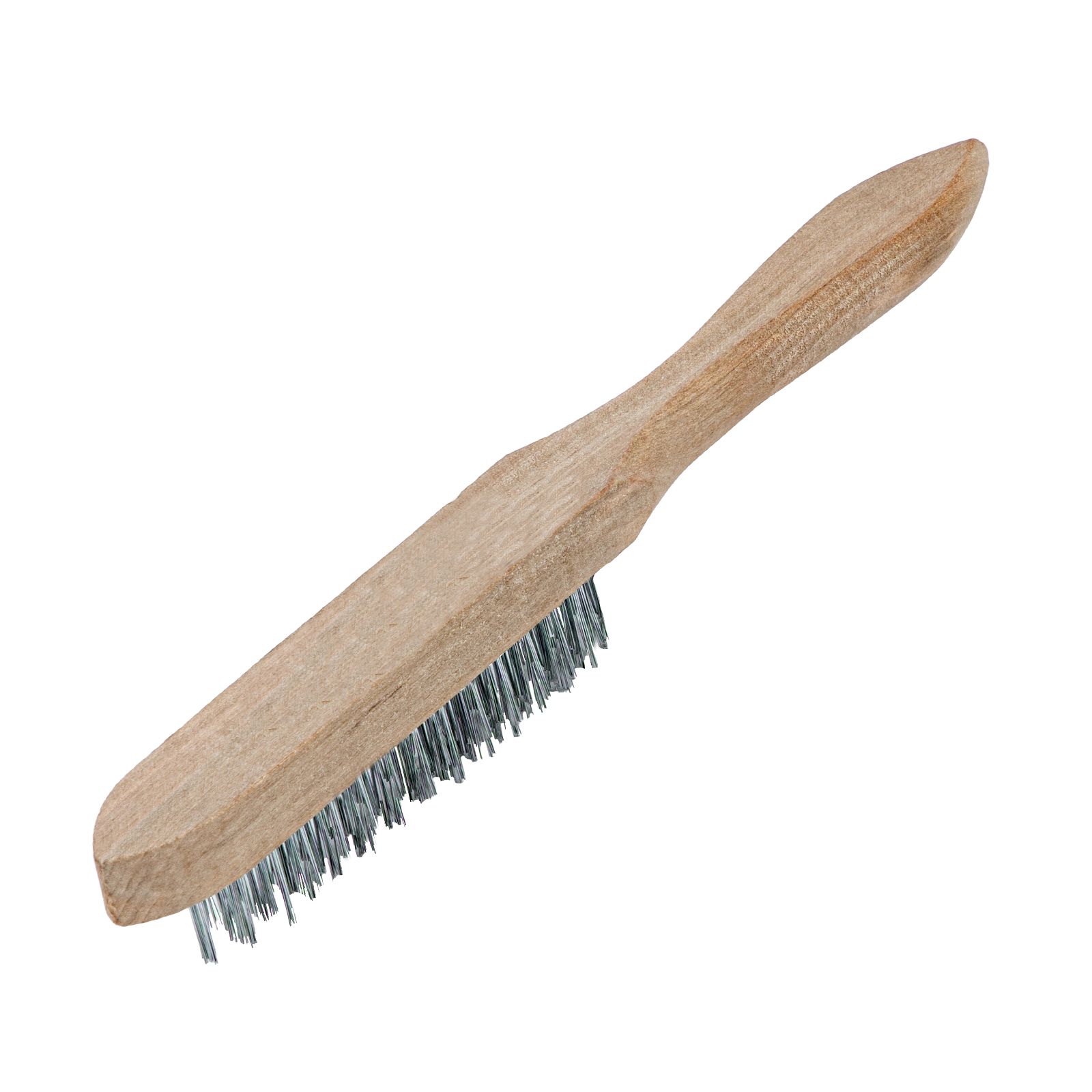 Металлическая трехрядная щетка Sparta 748205 с деревянной ручкой — инструмент для ручного удаления ржавчины, грязи, остатков краски с металлических, деревянных и других поверхностей. Трехрядная щетина обеспечивает качественную обработку. Щеткой пользуются строители, ремонтники, специалисты по кузовному ремонту, пригодится она и в быту.