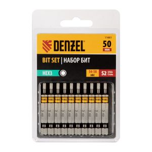 Бита HEX 3х50, сталь S2, шестигранный профиль, 10 шт. Е 6,3 Denzel
