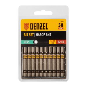 Бита HEX 5х50, сталь S2, шестигранный профиль, 10 шт. Е 6,3 Denzel