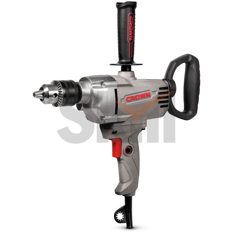 Мощная, безударная, односкоростная, низкооборотная дрель Crown CT10148 для сверления стальных, деревянных и искусственных материалов, а также для перемешивания разнообразных отделочных и строительных смесей.