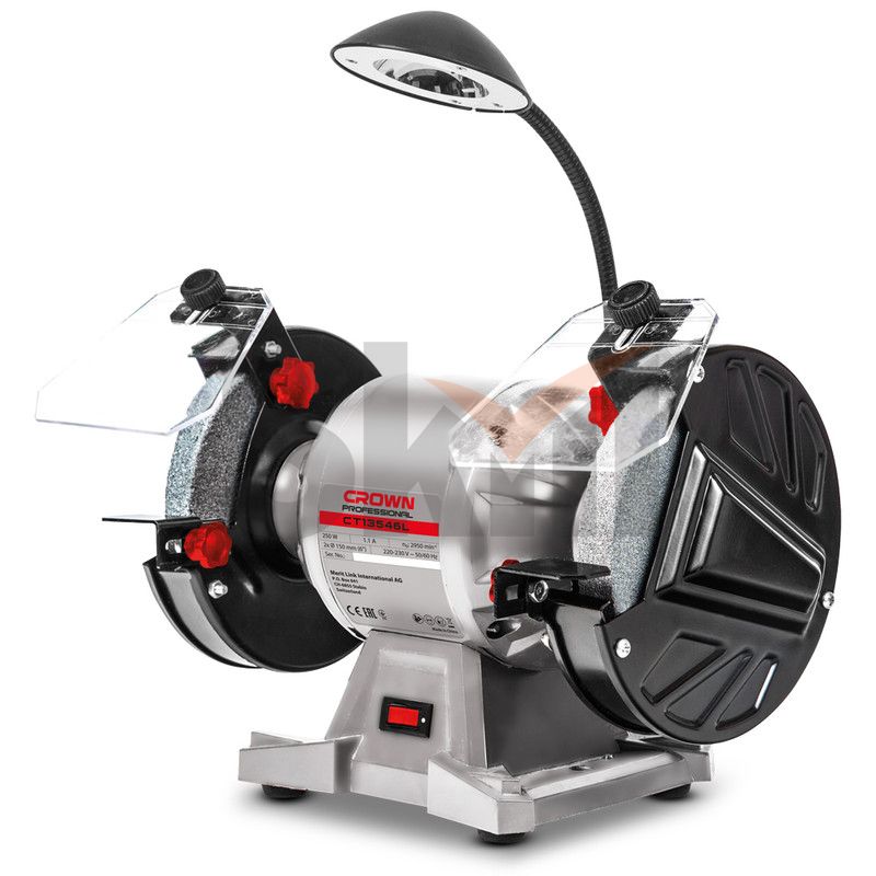 CT13546L CROWN Станок точильный 250Вт, 150/150мм, 12,7/32 мм, 20/20 мм