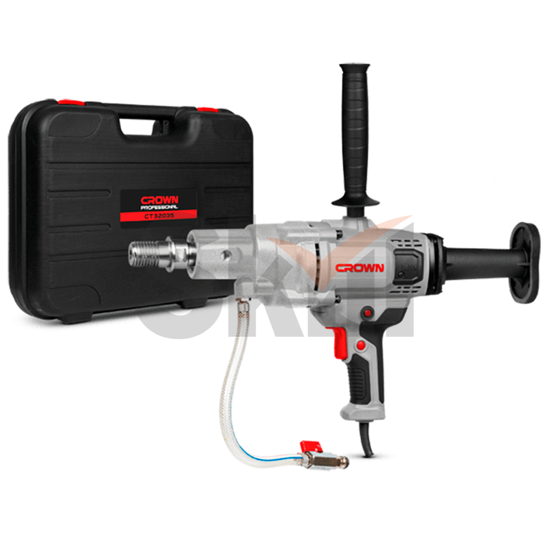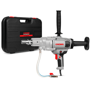 Ручная дрель алмазного сверления Crown CT32035 BMC предназначена для мокрого сверления отверстий полыми алмазными коронками в бетоне, железобетоне, камне, кирпиче, натуральном камне и в прочих абразивных материалах во время проведения общестроительных работ, отделочных работ, электромонтажных работ, монтажа сантехники, монтажа вентиляции, установки систем вентиляции и кондиционирования, прокладке труб, при проведении дорожных работ, отбора проб и так далее.