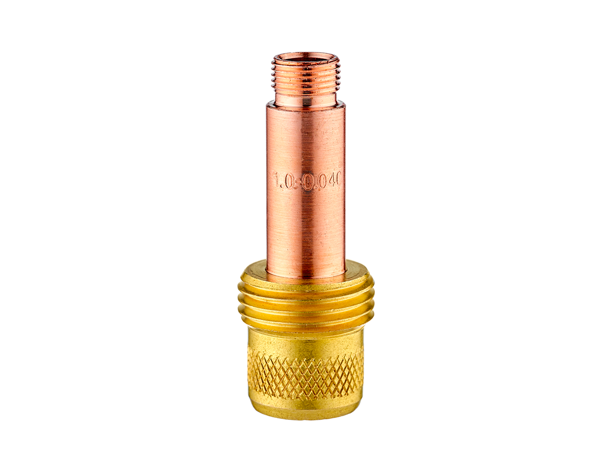 Держатель цанги (г.л.) применяется для фиксации и поджатия цанги, а также для установки сопел и подачи и распределения в них защитного газа. Устанавливается в головке горелках. Используется для установки газовых линз и создания ламинарного потока защитного газа на горелках TS 17, TS 18, TS 26, их модификациях и аналогах.
