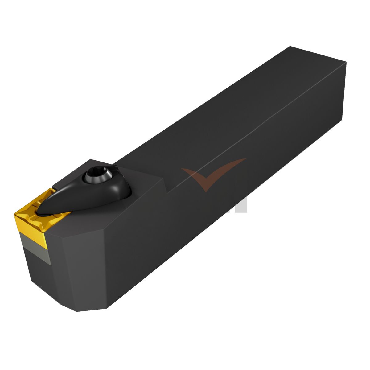 Угол в плане составляет 75º. Державка предназначена для точения не "основным" углом режущей пластины. Используется для поперечного точения.