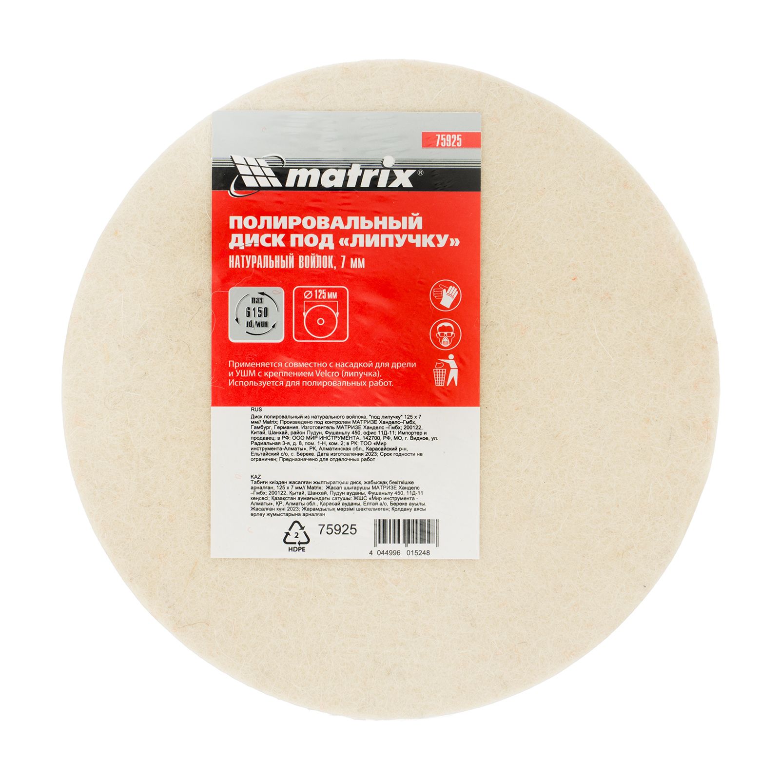 Диск полировальный из натурального войлока, "под липучку" 125 х 7 мм// Matrix