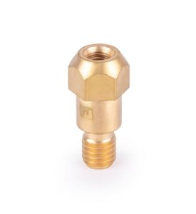Держатель наконечника представляет собой изнашиваемый в процессе эксплуатации комплектующий элемент для сварочных горелок класса MIG-36 (не более 340 А), который предназначен для надежной фиксации токопроводящего наконечника, имеющего резьбовое соединение М6. Кроме того, он может выполнять функцию держателя сопла и газораспределителя.