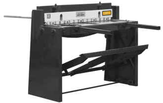 Модель оснащена резаками из высокоуглеродистой стали и механизмом надежного прижима листа. Гильотина имеет ограничитель глубины подачи заготовки и ножную педаль с простым регулятором положения.