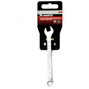 Комбинированный ключ Matrix 15152 размером 8 мм, из стали CrV, с покрытием «полированный хром», пригодится во время ремонтных работ дома или в гараже. С его помощью можно быстро монтировать и демонтировать крепежные элементы. Угол наклона кольцевого зева относительно плоскости инструмента составляет 15°, поэтому ключом удобно работать в труднодоступных местах.