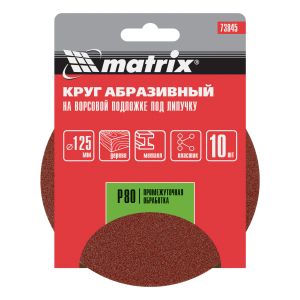 Круг абразивный на ворсовой подложке под "липучку", P 80, 125 мм, 10 шт.// Matrix