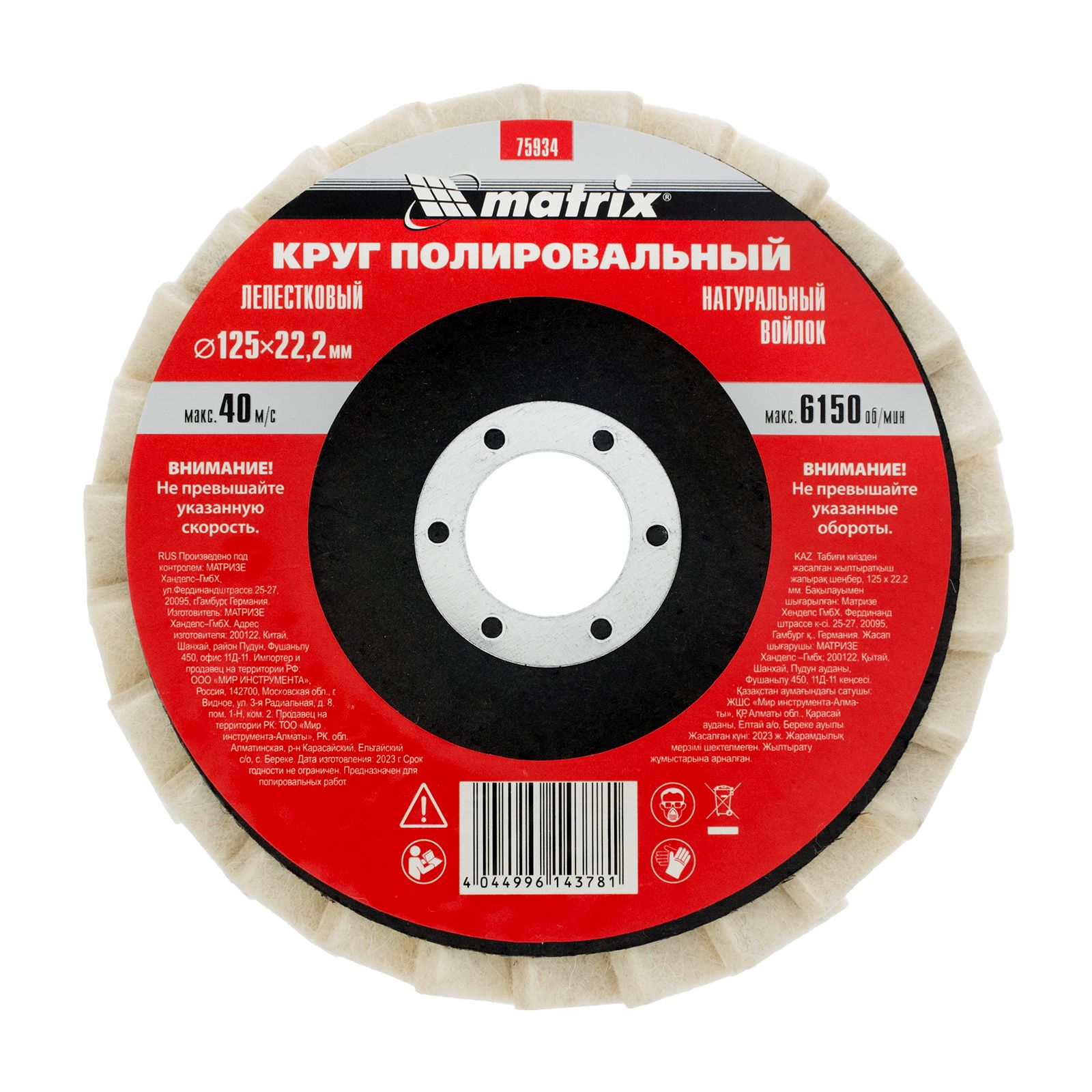 Круг полировальный лепестковый из натурального войлока 125 х 22,2 мм// Matrix