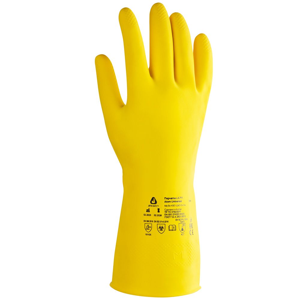 JETA SAFETY JL711 Atom Universal – прочные латексные перчатки с хлопковым напылением изнутри. Надежно защищают руки от воздействия бытовой химии, влаги и грязи. Применяются для выполнения хозяйственных работ, очистки и обслуживания технических помещений с влажной средой. Хлопковое напыление с антибактериальной обработкой обеспечивает комфортное использование перчаток в течение длительного времени.