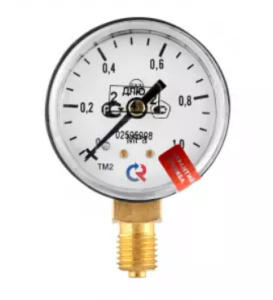 Сварочный манометр типа ТМ, серия 10. Применяется для измерения давления в жидких и газообразных, не вязких и не кристаллизирующихся измеряемых средах, с температурой до 80°C, неагрессивных к медным сплавам. Широко применяется в баллонных редукторах и регуляторах.