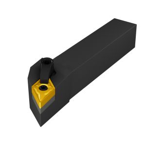 Токарная державка с комбинированным креплением типа М. Двойной прижим обеспечивает жесткий зажим пластины. Преимущественно предназначен для тяжелой токарной обработки. Угол в плане составляет 62°30 .Для продольного или контурного точения и снятия фаски по металлу.