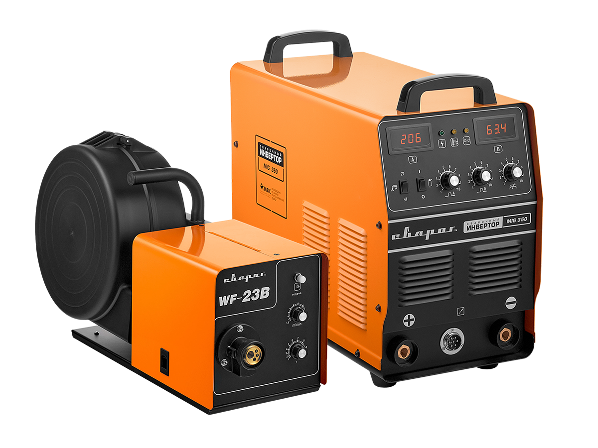 STANDART MIG 350 (J1601)— инверторный сварочный аппарат для механизированной сварки в среде защитных инертных и активных газов (MIG/MAG). Инвертор представлен в декомпактном исполнении, что позволяет увеличить радиус его действия, не передвигая источник питания.