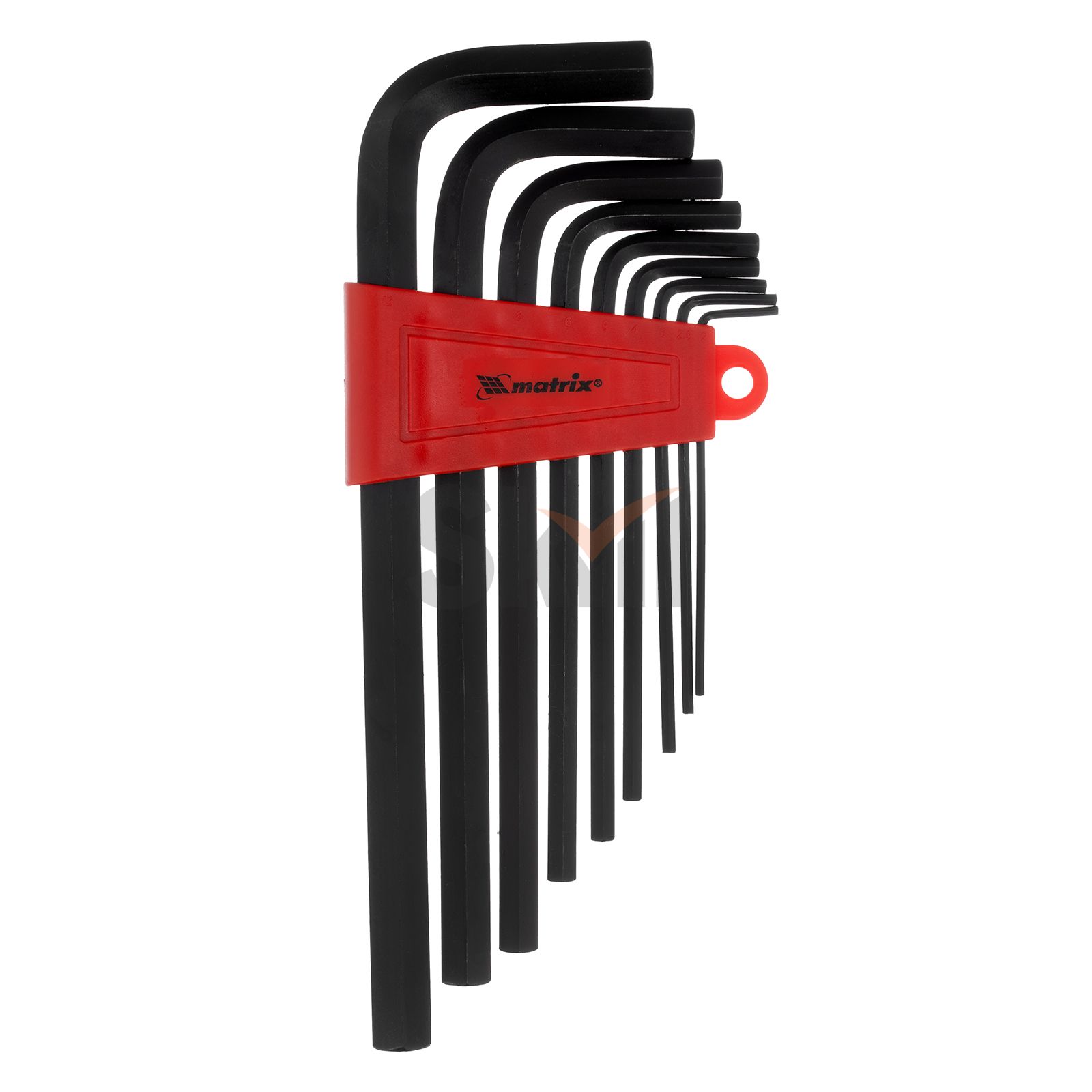 Набор ключей имбусовых HEX, 2,0–12 мм, CrV, 9 шт., оксидированные, удлиненные// Matrix