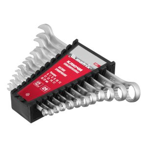 Набор Matrix 15412 включает 12 комбинированных ключей из стали CrV, размером 6-22 мм, с покрытием «матовый хром», которые пригодятся во время ремонтных работ дома или в гараже. С их помощью можно быстро монтировать и демонтировать крепежные элементы. В набор входят инструменты основных типоразмеров, позволяющие эффективно решать поставленные задачи.