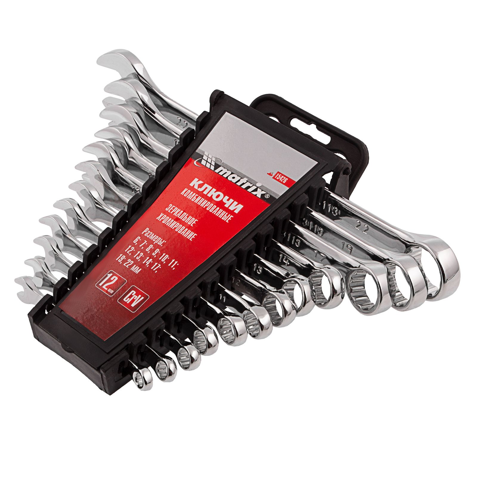 Набор ключей комбинированных, 6-22 мм, 12 шт, CrV, полированный хром Matrix