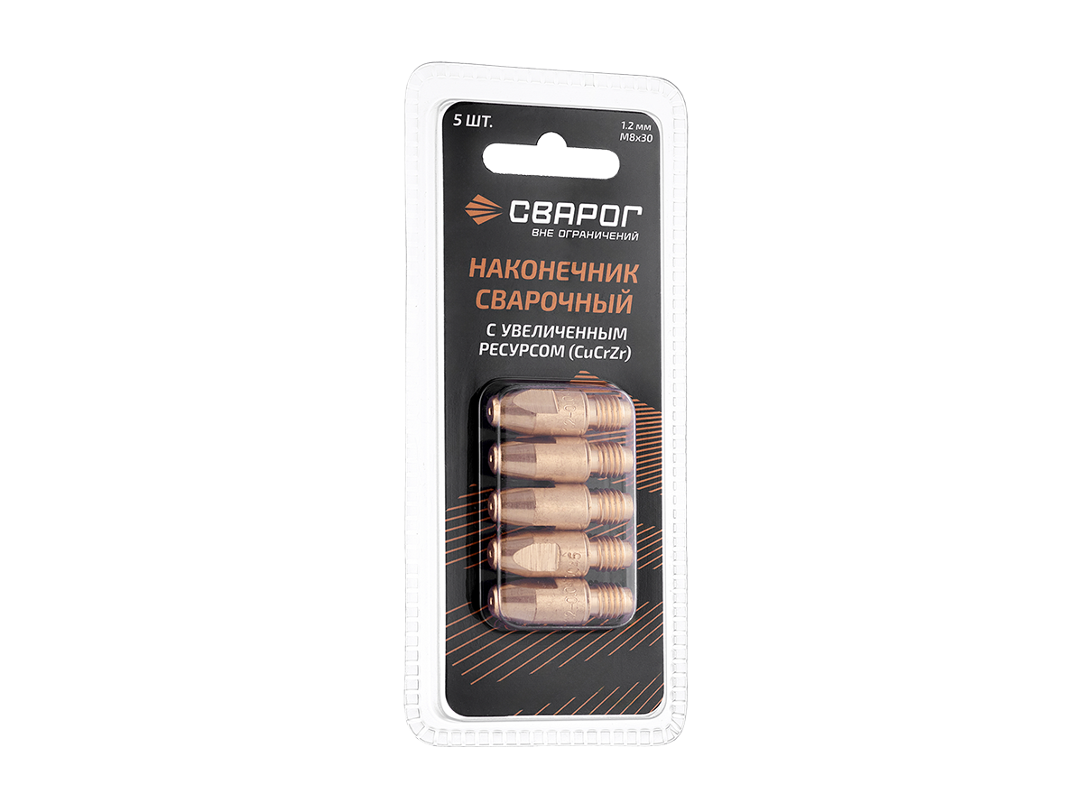 Сварочный наконечник M8×30 CU-CR-ZR предназначен для подвода сварочного тока к проволоке. Выбирается в зависимости от диаметра и материала используемой сварочной проволоки и типоразмера резьбы вставки под наконечник.