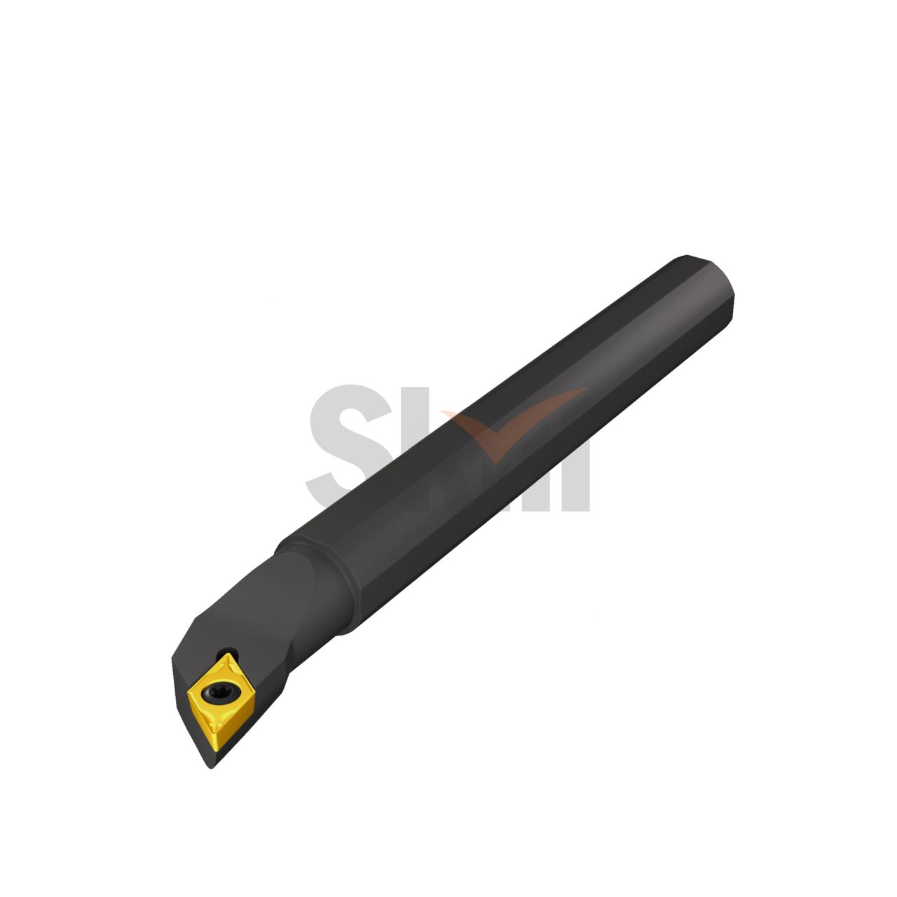 Токарная расточная державка для пластин типа DC..07. Предназначена для продольного и поперечного точения. Минимальный диаметр точения составляет 13 мм. Крепление винтом (тип S) обеспечивает быструю и надежную установку позитивных пластин. Без подвода СОЖ. Правое исполнение.