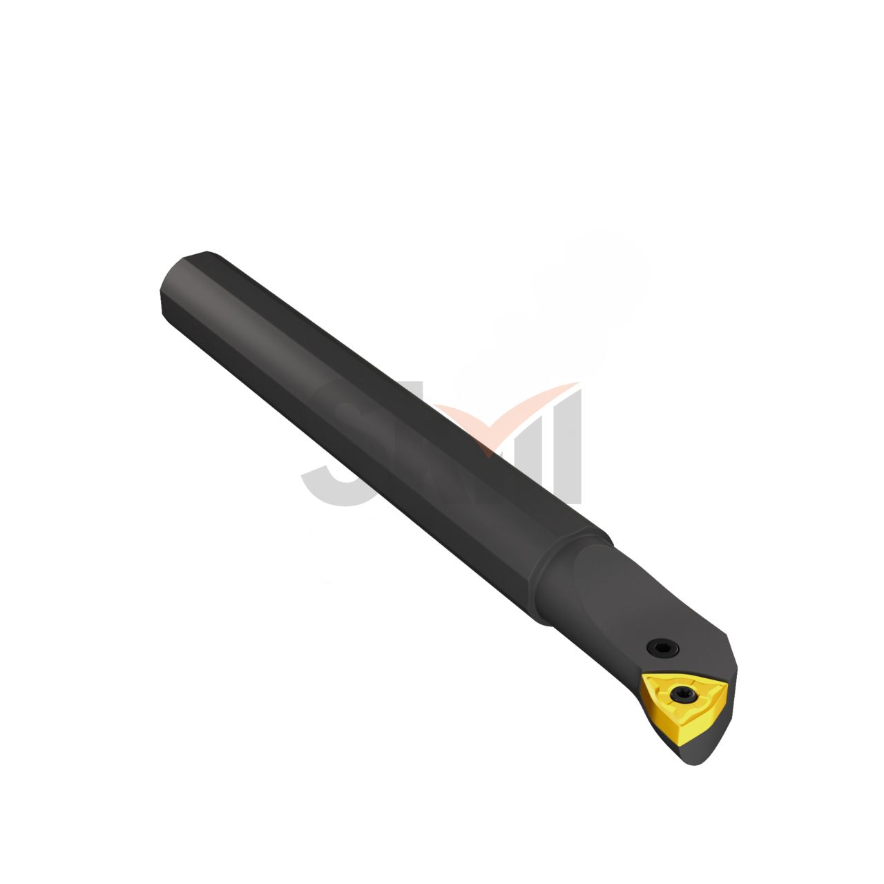 Токарная расточная державка для пластин типа WN..08. Предназначена для продольного и поперечного точения. Минимальный диаметр точения составляет 25 мм. Прижим рычагом за отверстие типа Р обеспечивает удобную и быструю смену режущей пластины, а также не препятствует эвакуации стружки. Без подвода СОЖ. Левое исполнение.
