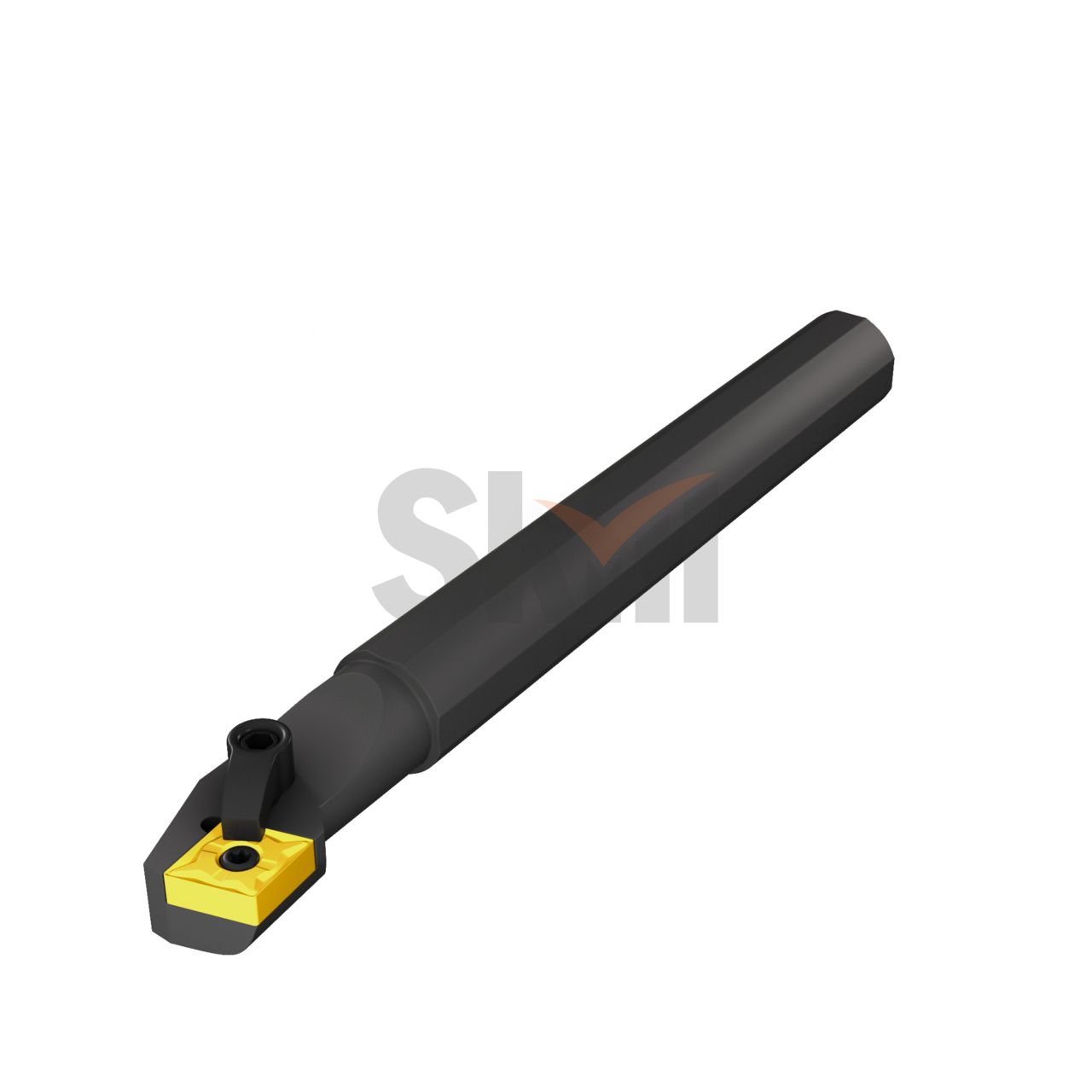 Токарная расточная державка для пластин типа CN..12. Предназначена для продольного точения. Минимальный диаметр точения составляет 40 мм. Комбинированный тип крепления М обеспечивает максимально жесткую фиксацию режущей пластины. Без подвода СОЖ. Правое исполнение.
