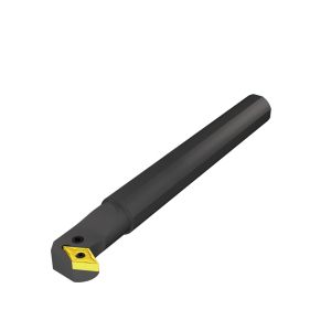 Токарная расточная державка для пластин типа DN..1504. Предназначена для продольного и контурного точения. Минимальный диаметр точения составляет 40 мм. Прижим рычагом за отверстие типа Р обеспечивает удобную и быструю смену режущей пластины, а также не препятствует эвакуации стружки. Без подвода СОЖ. Правое исполнение.