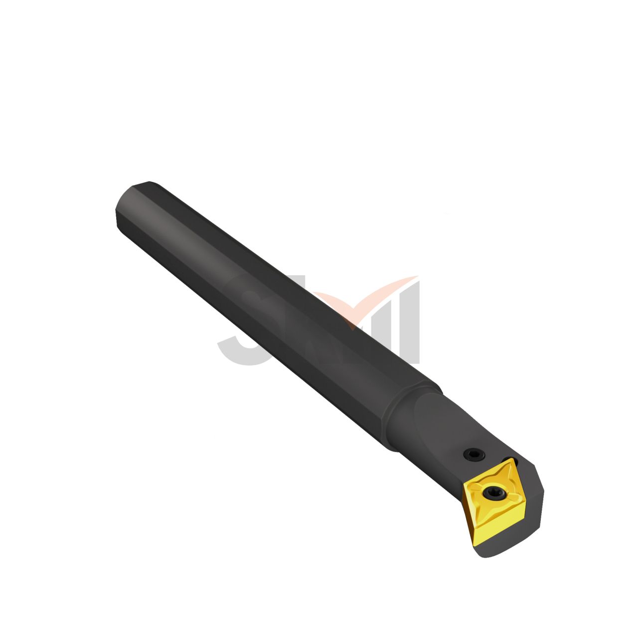 Токарная расточная державка для пластин типа DN..1506. Предназначена для продольного, поперечного и контурного точения. Минимальный диаметр точения составляет 50 мм. Прижим рычагом за отверстие типа Р обеспечивает удобную и быструю смену режущей пластины, а также не препятствует эвакуации стружки. Без подвода СОЖ. Левое исполнение.