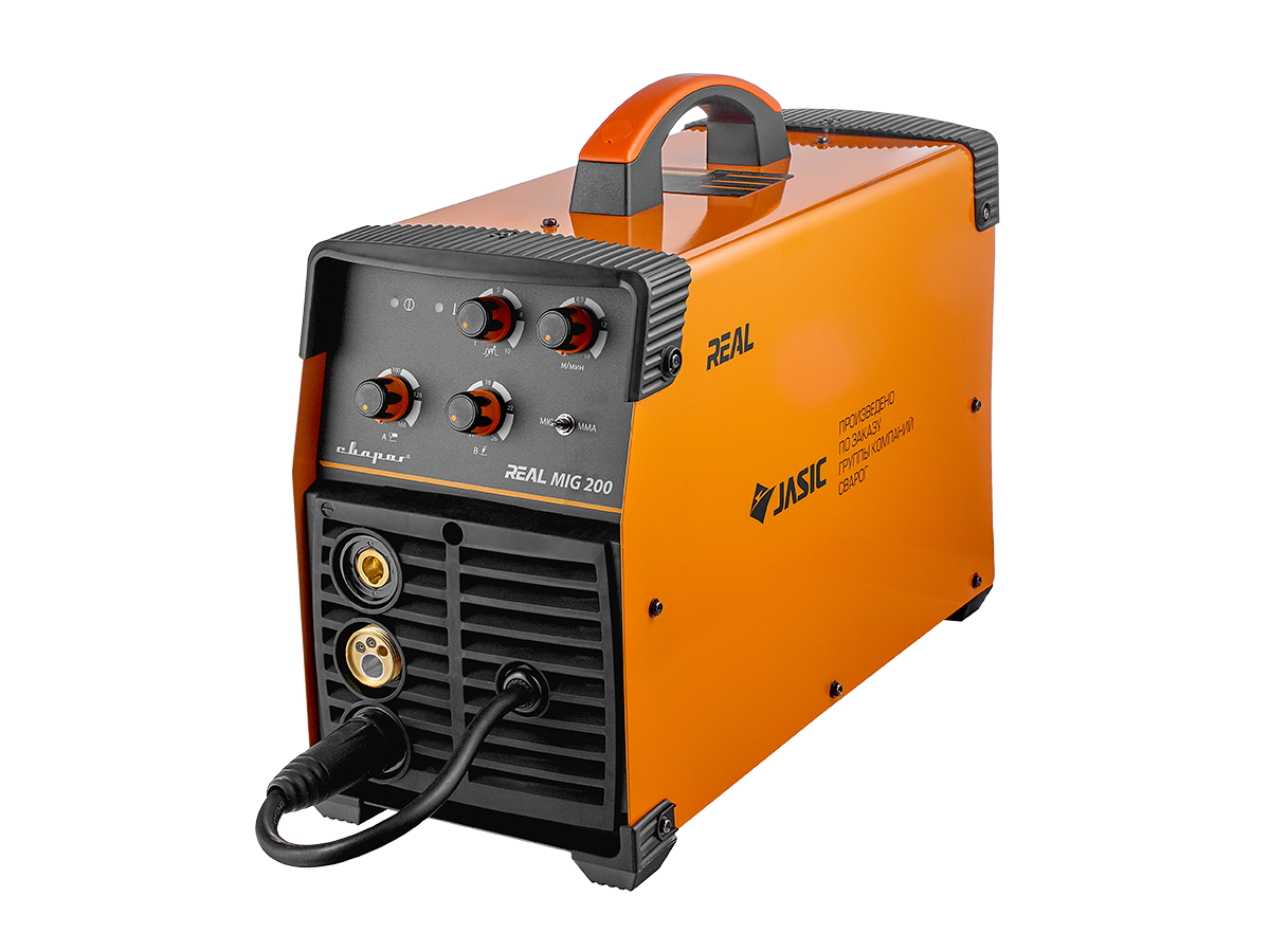REAL MIG 200 (N24002N)— инверторный сварочный аппарат для полуавтоматической сварки в среде защитных газов (MIG/MAG), сварки порошковой проволокой (FCAW), а также ручной дуговой сварки покрытым электродом (ММА).