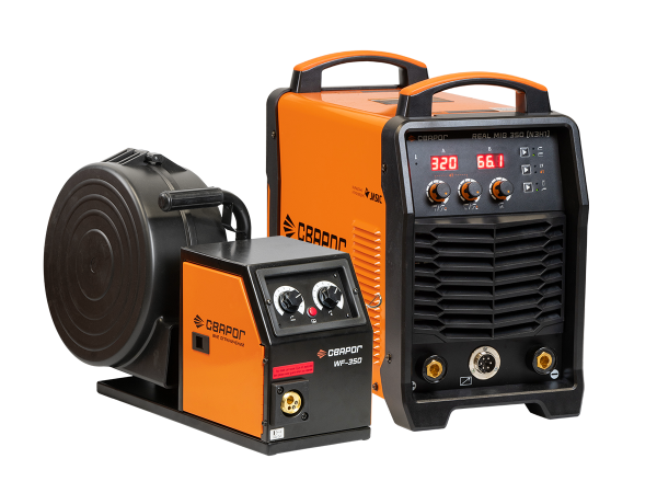 REAL MIG 350 (N3H1) предназначен для полуавтоматической сварки в среде защитных газов (MIG/MAG), сварки порошковой проволокой (FCAW), ручной дуговой сварки покрытым электродом (ММА), а также аргонодуговой сварки неплавящимся электродом (TIG DC).