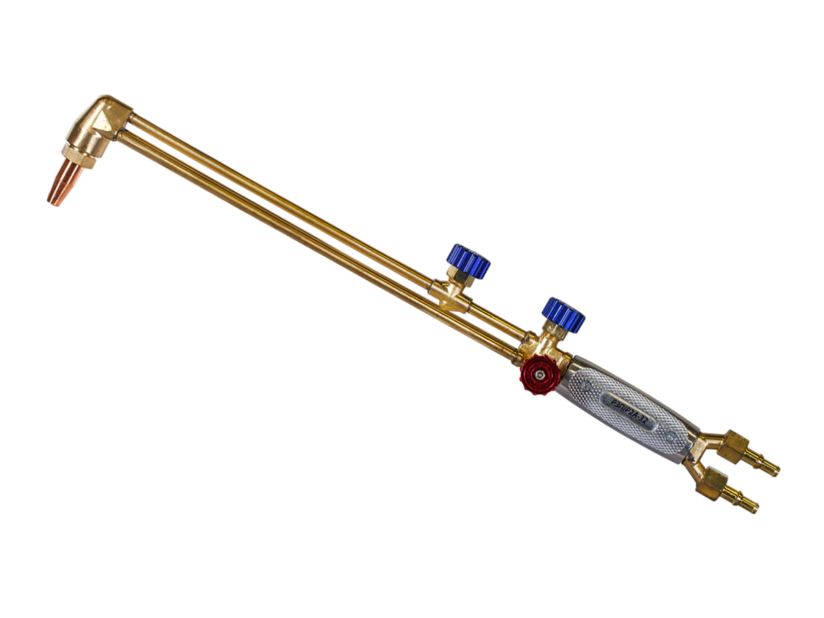 Резак трехтрубный пропано—кислородный Р3П—Р2А—32 — резак с внутрисопловым смешением газов предназначен для резки раскроя и разогрева деталей, заготовок, листового и сортового проката из черных металлов