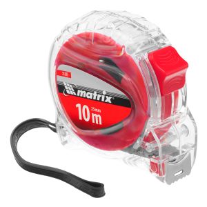 Рулетка Matrix Crystal 31075 с лентой длиной 10 м и шириной 25 мм, в корпусе из поликарбоната, — измерительный инструмент, использующийся как в профессиональной сфере, так и в быту. Отличительной особенностью модели является корпус из высокопрочного поликарбоната, характеризующийся повышенной устойчивостью к механическим повреждениям.