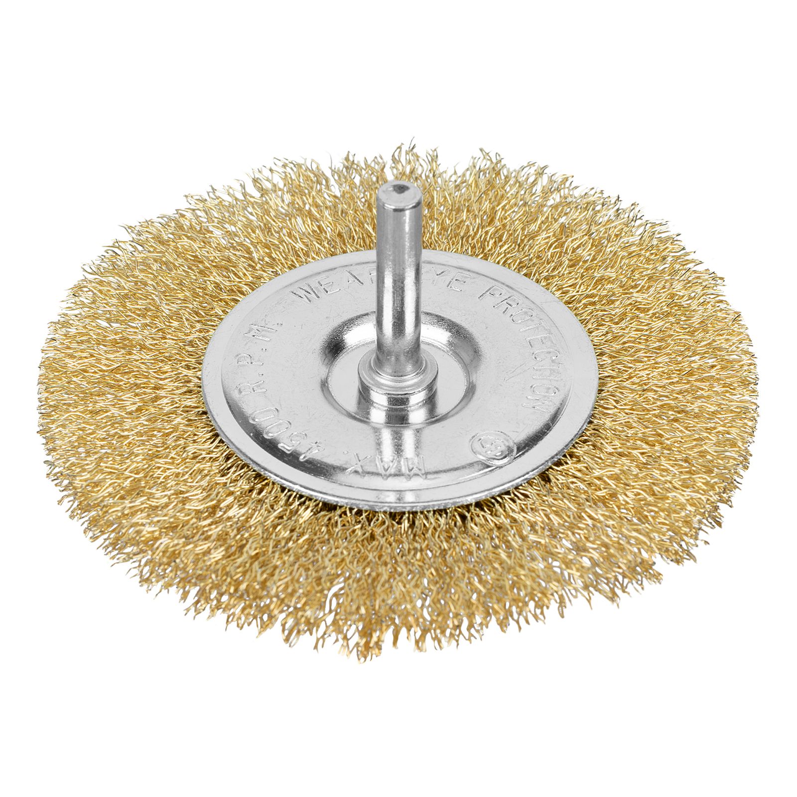 Щетка для дрели 100 мм, плоская со шпилькой, латунированная витая проволока Matrix