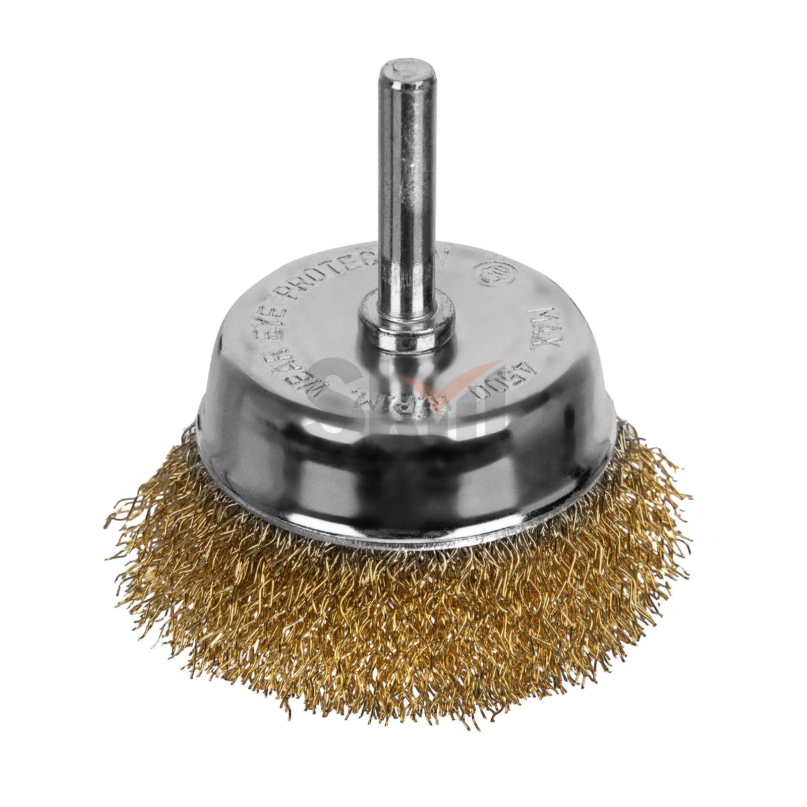 Щетка для дрели, 65 мм, "чашка" со шпилькой, латунированная витая проволока Matrix