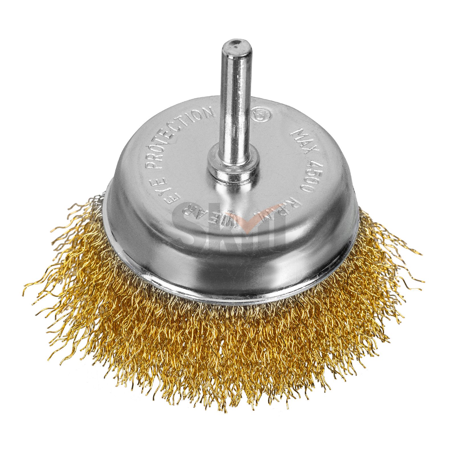 Щетка для дрели «чашка» Matrix 74478 диаметром 75 мм, со шпилькой и щетиной из латунированной витой проволоки, используется для очистки металлических, деревянных и пластиковых поверхностей от незначительных загрязнений и остатков лакокрасочных покрытий. Помогает подчеркнуть структуру материала или придать ему шероховатость. Хвостовик диаметром 6 мм устанавливается в патрон электродрели, поддерживающей скорость 4500 об/мин. Во время работы нужно использовать средства индивидуальной защиты — респиратор, очки, наушники, спецодежду и обувь. Щетка пригодится как профессиональным, так и домашним мастерам.