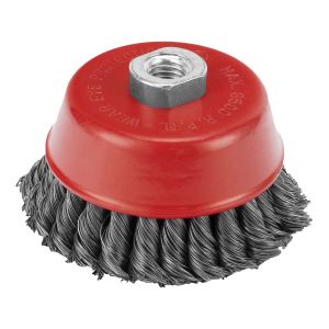 Двухрядная щетка Matrix «Чашка» 74677 диаметром 100 мм, с щетиной из крученой проволоки толщиной 0,35 мм, устанавливается на вал углошлифовальной машины с помощью гайки М14. Рекомендованная максимальная скорость вращения — до 8500 об/мин. Оснастка оптимальна для грубой (черновой) обработки: снятия старого слоя лакокрасочного покрытия и ржавчины, удаления загрязнений, зачистки сварных швов. Эффективно справляется с зачисткой больших поверхностей, подходит для выполнения работ повышенной сложности.