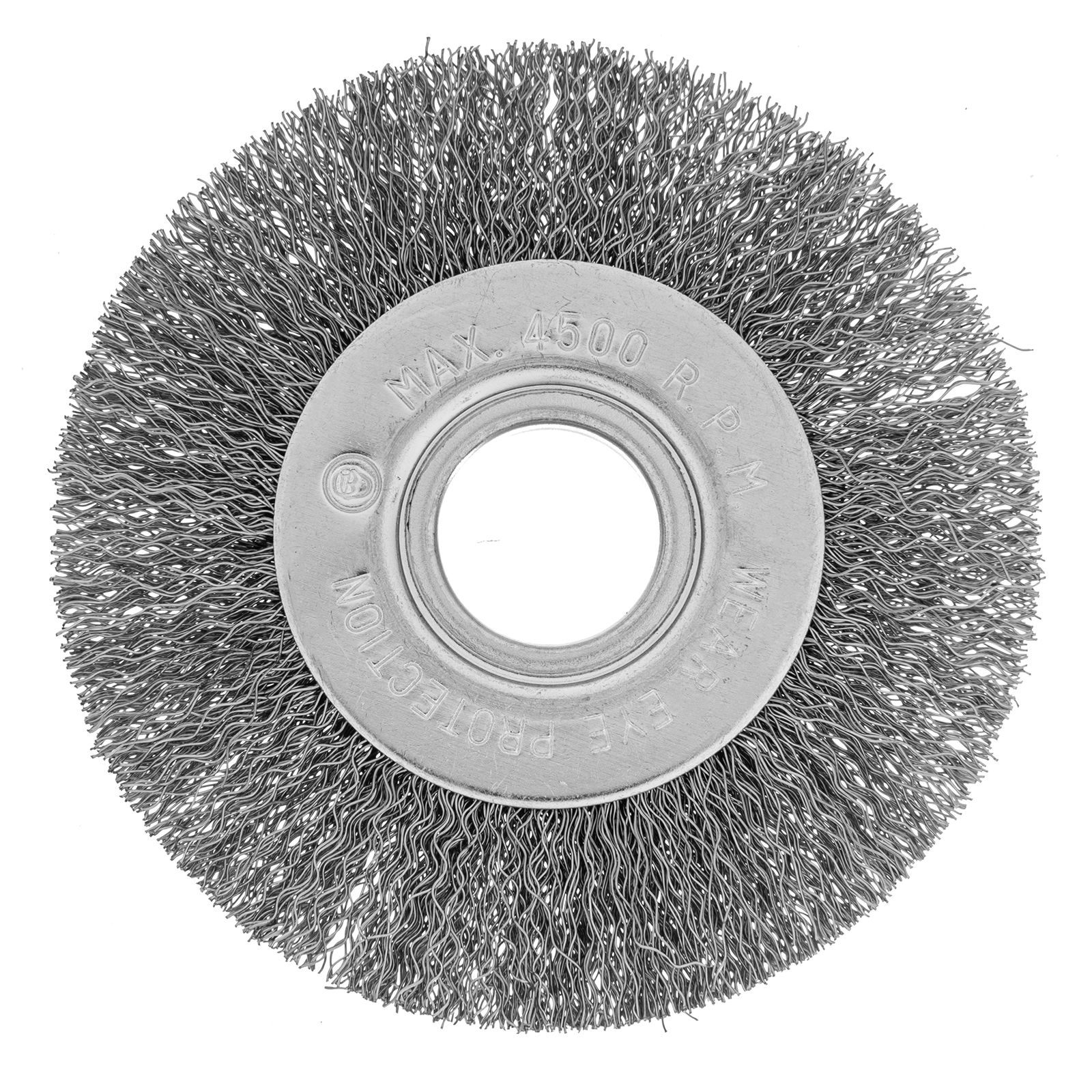 Плоская щетка для УШМ Сибртех 746487 диаметром 100 мм, с посадкой 22,2 мм, с щетиной из витой проволоки, предназначена для щадящей очистки твердых поверхностей от загрязнений, ржавчины, остатков краски и других покрытий. Щетина из проволоки толщиной 0,3 мм постепенно снимает тонкий слой материала. Плоская форма щетки делает ее оптимальным инструментом для обработки внутренних углов, пазов, изгибов и малодоступных мест. Щетка позволяет придать шероховатость или подчеркнуть структуру материала. Насадка устанавливается на фланец углошлифовальной машины и подходит для продолжительной работы, не требующей частой смены оснасток. Рекомендуемая максимальная скорость вращения составляет 4500 об/мин. Для обеспечения безопасности оператора следует использовать средства индивидуальной защиты. Щетка применяется в строительной, производственной сфере, а также в быту.