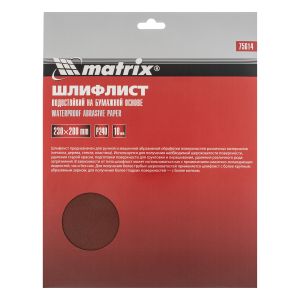 Шлифлист на бумажной основе, P 240, 230 х 280 мм, 10 шт, водостойкий Matrix