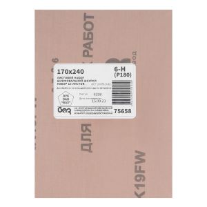 Шлифлист на тканевой основе, зернистость № 6, 240 х 170 мм, 10 шт, водостойкий, "БАЗ"