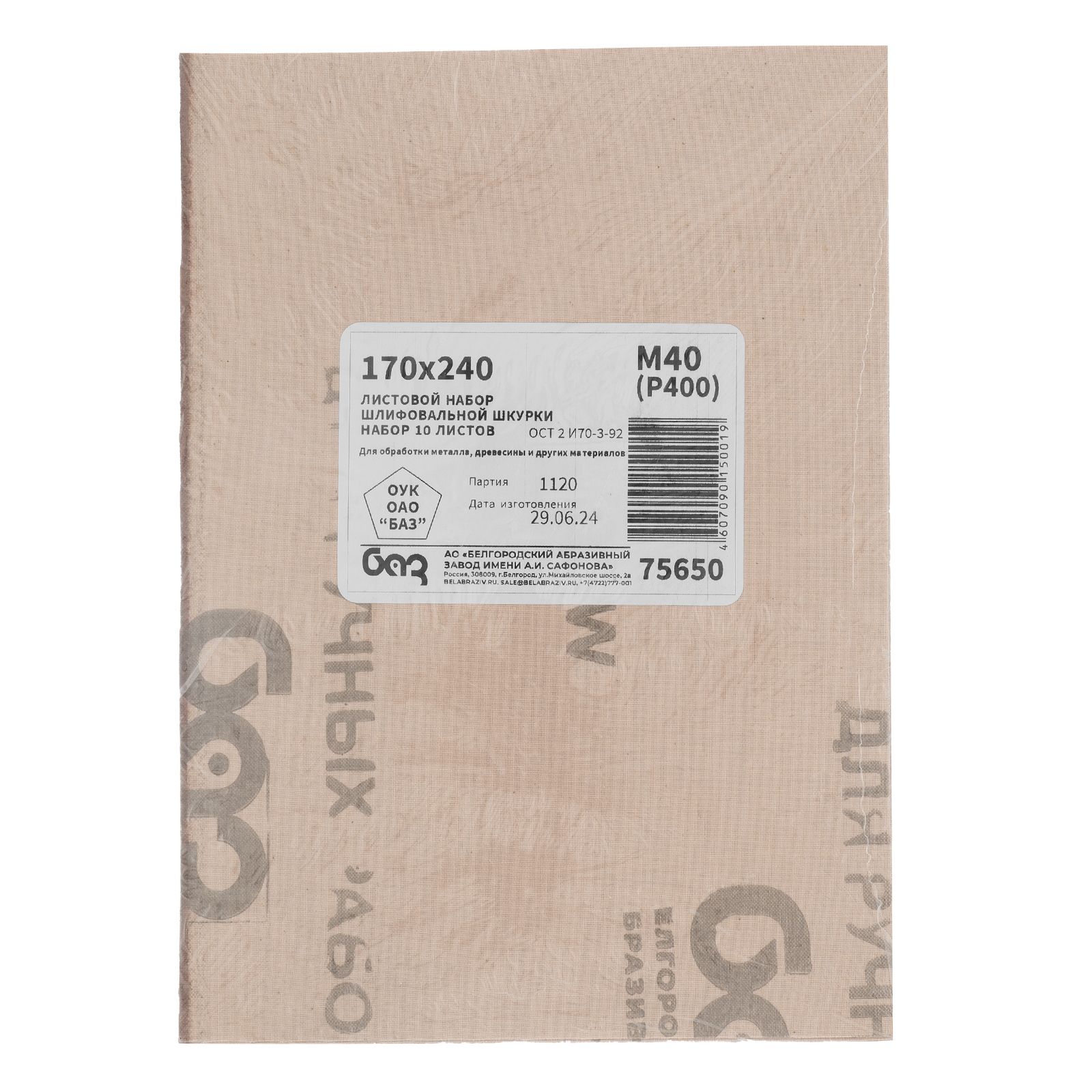Шлифлист на тканевой основе БАЗ М40 (Р400) серии 14а арт. 75650 предназначен для обработки деревянных, металлических, пластмассовых и других поверхностей. Устанавливается на вибрационные шлифмашины, приспособления для шлифования, а также может использоваться вручную. Мелкозернистый абразив Р400 эффективен для придания гладкости финальным покрытиям и шлифовки материалов между покрасками.