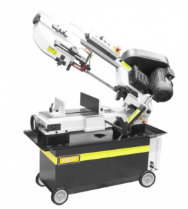 Стандартная модель мобильного ленточнопильного станка, разработана для резки черных металлов и других материалов с целиковым, полым или профильным сечением. Станок позволяет делать распилы заготовок диаметром до 180 мм в полуавтоматическом режиме с ручным возвратом пильной рамы в первоначальное положение. Пила опускается под собственным весом, станок оборудован дросселируемым гидравлическим цилиндрами подач, который позволяет автоматически подстраивать скорость опускания пильной рамы в зависимости от профиля заготовки, что обеспечивает оптимальные режимы распила. Станкам не требуется подключение к источнику сжатого воздуха.