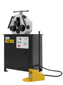 Электрический станок для гибки профильных труб c вертикальным положением гибочной головки. Крепкая устойчивая конструкция с 2-мя приводными роликами обладает длительным сроком службы.