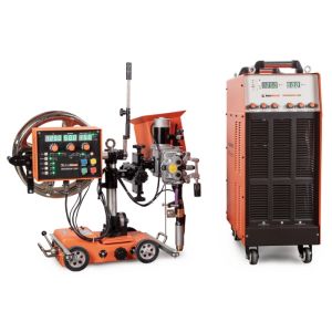 Трактор FoxWeld ТС-1250 – автомат тракторного типа, предназначен для электродуговой сварки под слоем флюса низкоуглеродистых и легированных сталей плавящейся электродной проволокой на постоянном токе с независимыми от параметров дуги скоростями сварки и подачи электродной проволоки. Обеспечивает сварку соединений встык с разделкой и без разделки кромок, угловых и нахлёсточных швов. Электрическая схема трактора обеспечивает плавное регулирование сварочного тока, напряжения на дуге, скорости сварки, предварительную установку (без сварки) параметров режима и контроль их во время сварки. Управление сварочным процессом осуществляется с пульта управления, расположенного на тракторе. Сварочная головка может поворачиваться вокруг вертикальной и горизонтальной оси, что дает возможность производить сварку не только «внутри колеи», но и «вне колеи» трактора, а также под углом 45°.