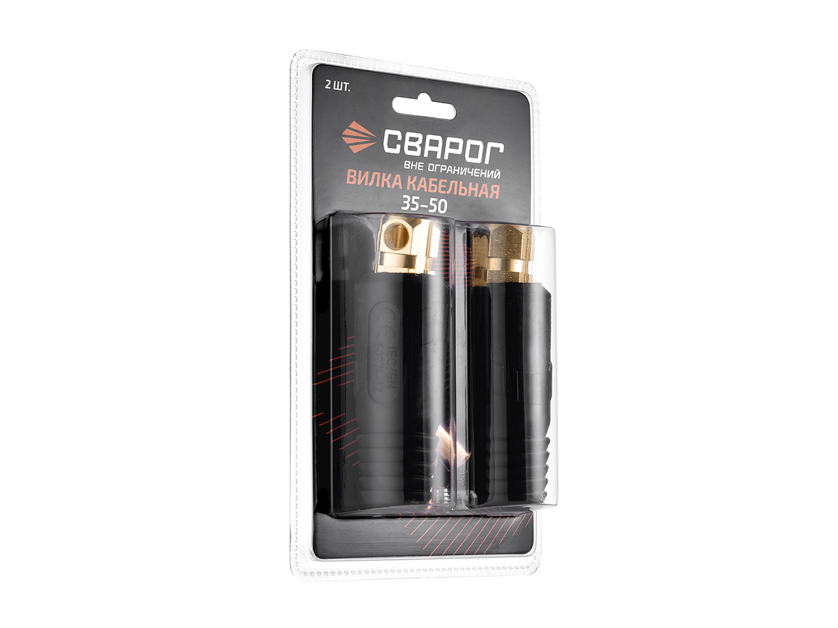 Вилка кабельная 35—50 обеспечивает максимально безопасное соединение сварочных кабелей между собой и кабеля с источником питания