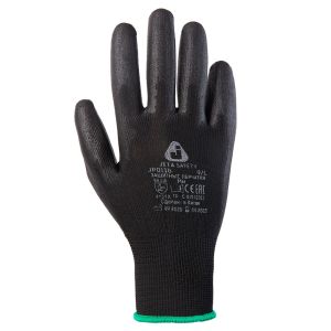 JETA SAFETY JP011b – комфортные и эластичные вязаные перчатки из полиэфирной пряжи. На ладони и пальцах нанесено тонкое полиуретановое покрытие. Улучшенный воздухообмен обеспечивается благодаря отсутствию покрытия на внешней стороне ладони. Полиуретановое покрытие на ладони и пальцах устойчиво при работе с жирными масляными деталями.